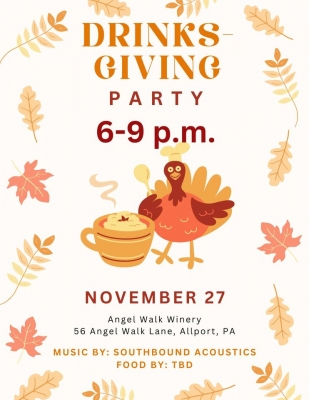 Come celebrate Drinks-giving with us at Angel Walk Winery! Southbound will be playing from 6-9 p.m. Adam & Nancy's Paninis will be serving up their delicious food! More information coming soon!