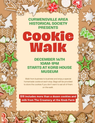 Walk around town Curwensville and get a homemade specialized cookie from at least 14 businesses as well as milk from The Creamery at the Knob Farm.