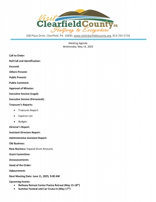Visit Clearfield County Board Meeting