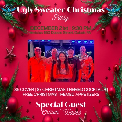 Our Ugly Sweater Christmas Party THIS SATURDAY at 9pm, with Cravin' Waves starting at 9:30pm! Come dressed in your best Christmas apparel and welcome Cravin Waves for their Nightfall debut! Enjoy some complimentary holiday themed appetizers, and $7 themed cocktails (including the Frosted Sugar Cookie)! $5 Cover and 21+