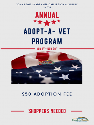 Stop by the Legion today and Adopt your Veteran, for this years gift giving event.