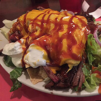 Rustic, counter-serve joint offering BBQ platters, pizza, sandwiches, sides, and vegetarian meals, wheelchair accessible, L/D. 7 Days a week 9am-10pm.