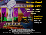 Join us for our Annual Super Bowl/Soup Bowl. Bring your BEST soup recipe and let the judging begin. Prizes will be awarded to the TOP 3 Soups. Most Votes wins, so bring friends and family to secure your Soup Bowl Victory. Winners Announced at HALFTIME.