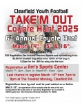 Registrations done by mail must be post marked on or before March 12th. No registrations will be accepted after the start of the hunt. Sunday March 16th scales close at 1 pm sharp. Registration can be mailed to 2025 Coyote Hunt 1001 Bowmans Hill Road Clearfield PA 16830