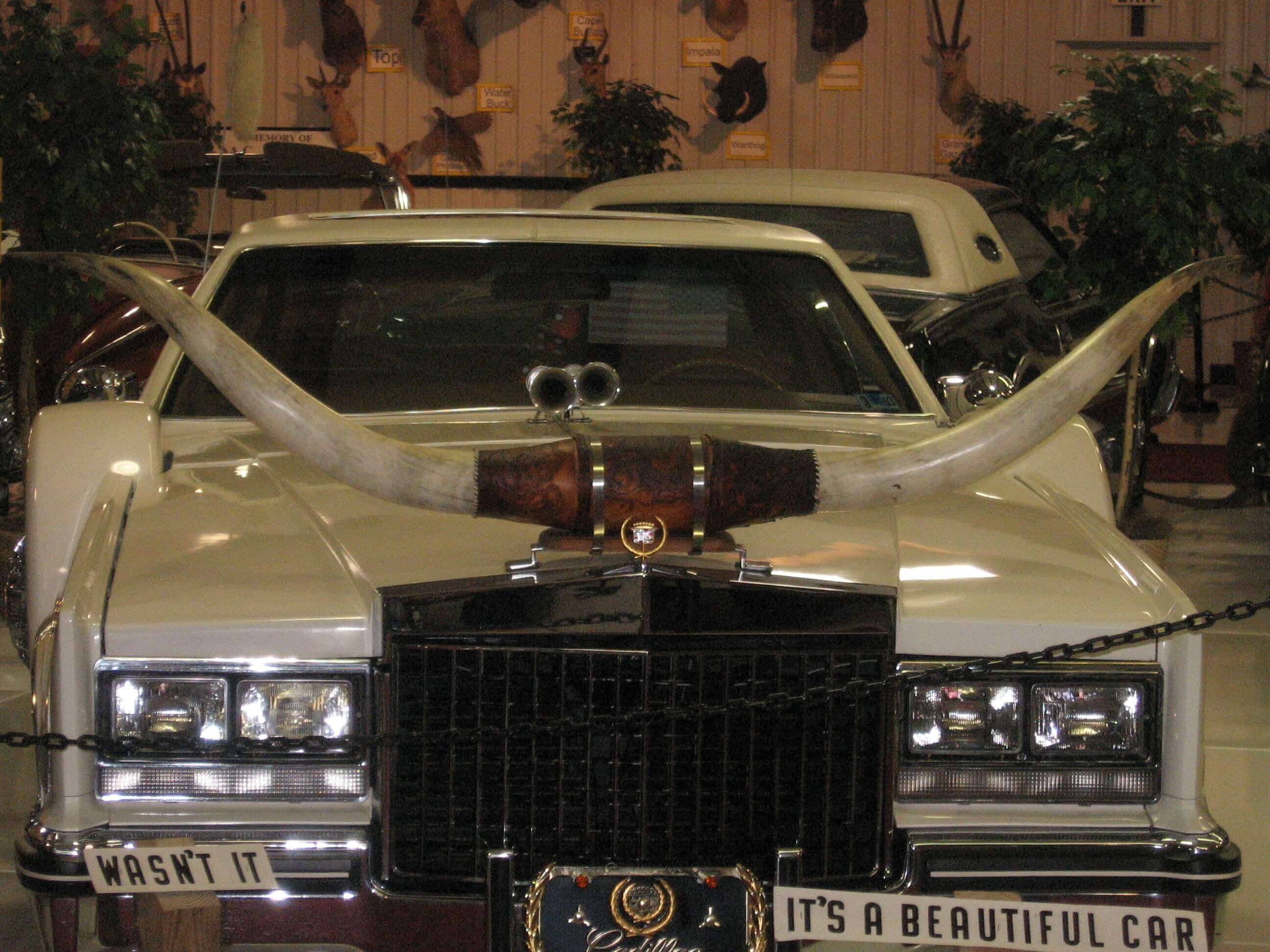 Over 70 collector cars from the thirties through the nineties. Over 400 trophy game mounts of deer, elk, bear, lions, African game and much more.