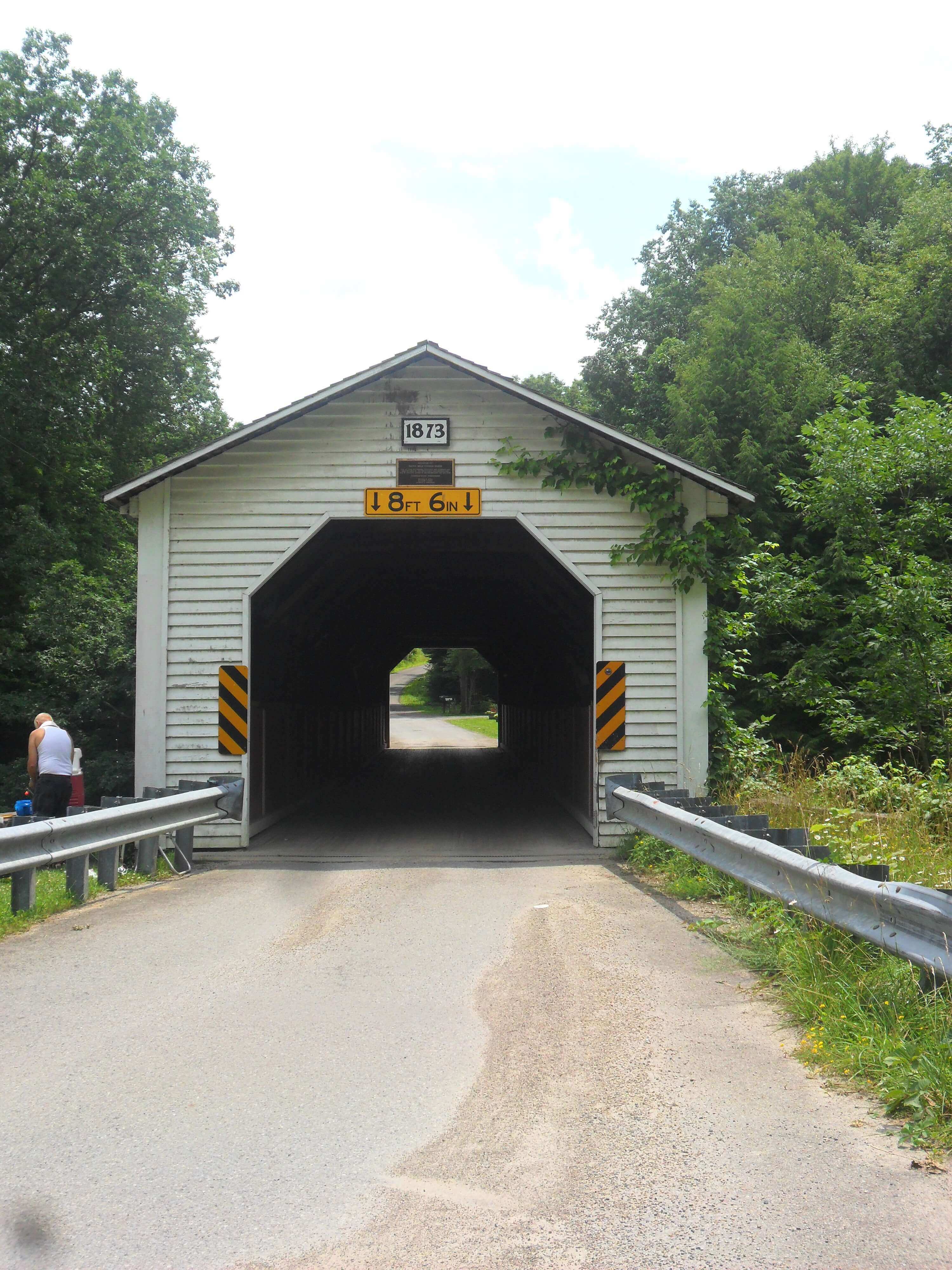 After a century of use, Clearfield County's only covered bridge was renovated in 1978 and again in the mid-1990s following damage by a heavy snowfall. Adjacent to picnic grove. Near Mahaffey on Route 219, just south of intersection of Route 219 and Route 36.