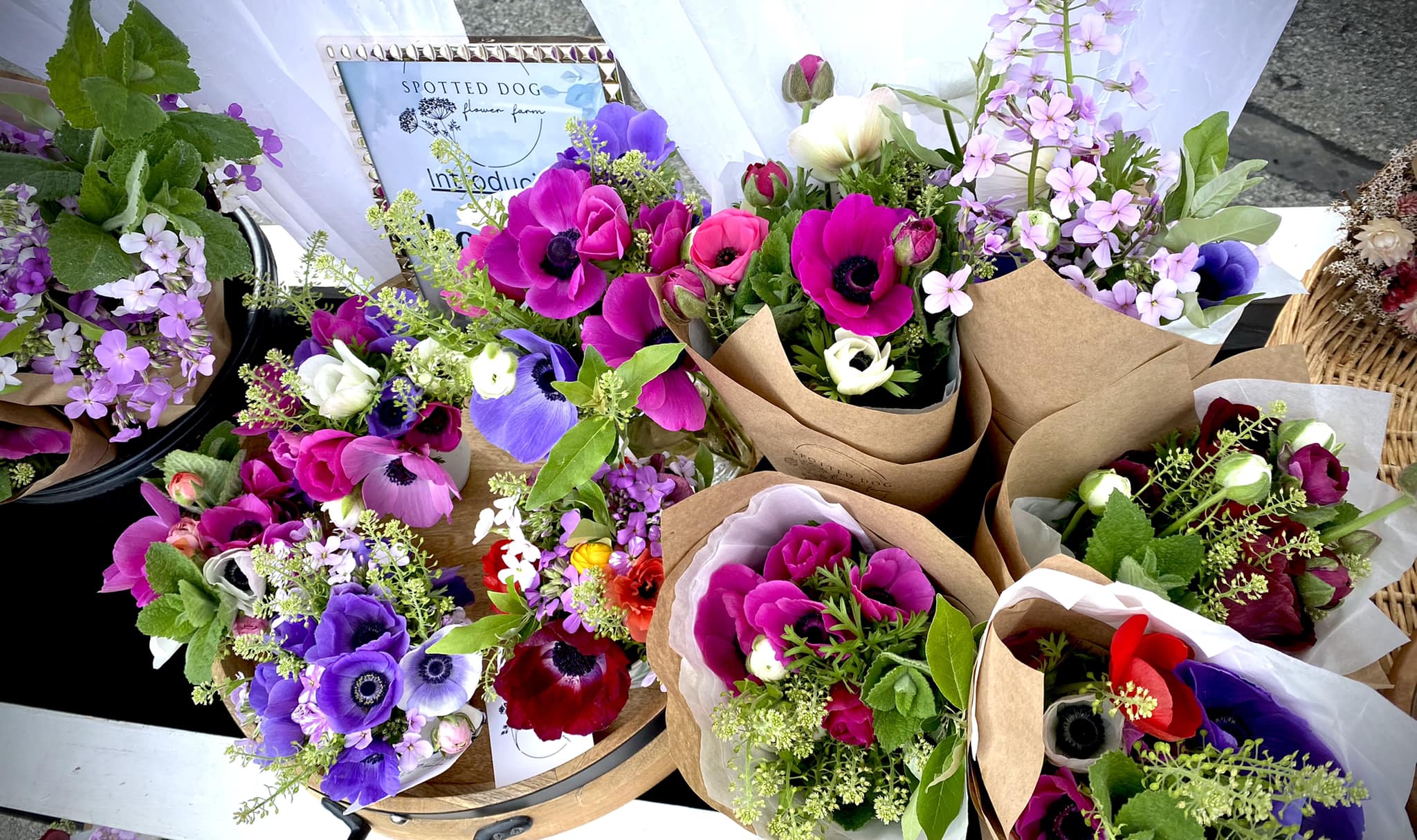 Spotted Dog Flower Farm grows fresh, seasonal, specialty flowers, designed into grab-and-go bouquets that are sold at our flower stand (307 Bridge Street). We also host unforgettable agritourism events unique to our area, like "Pick Your Own" events as well as other fun flower-filled experiences and workshops. Our flowers are grown, not flown. The grab and go flower cart is open Tuesdays through Sunday 9:00am - 7:00pm. Farm events, hours vary.